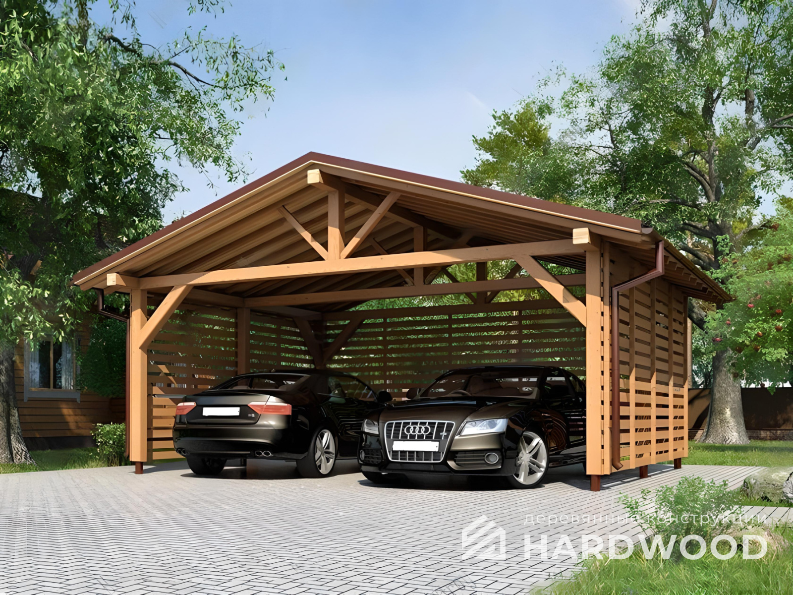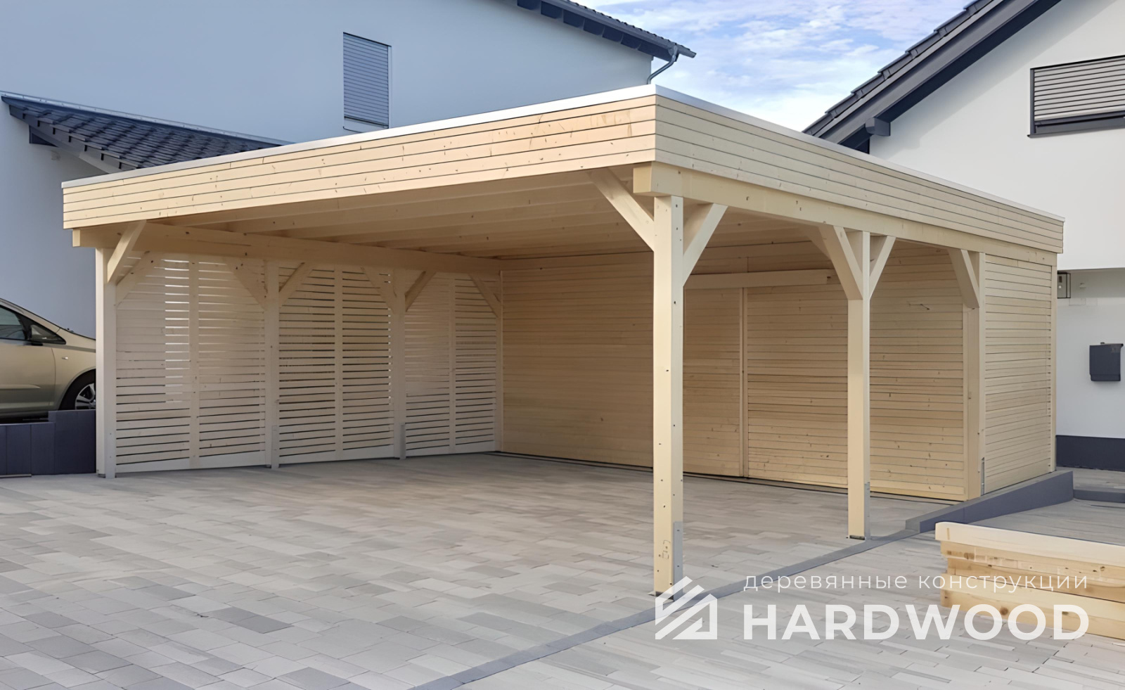 | Название модели: | Навес для машины с хозблоком из дерева №103 |